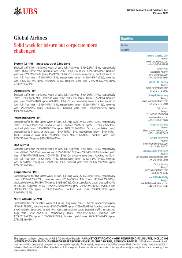 【UBS AG London Branch】【20230629】Global Airlines_Solid week for leisure but corporate more challenged-39页