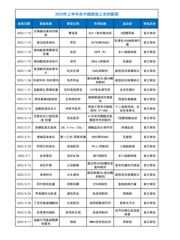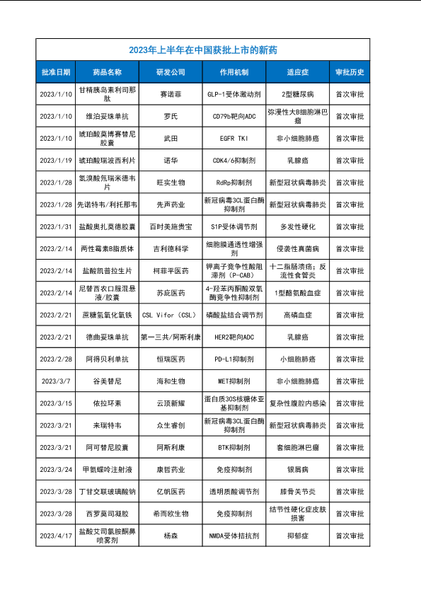 【医药观澜】【20230630】2023上半年获批新药完整表格-6页