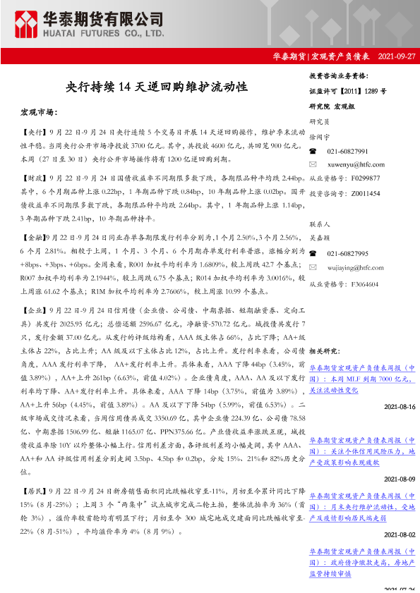 【华泰期货】【20210927】宏观资产负债表:央行持续14天逆回购维护流动性-15页