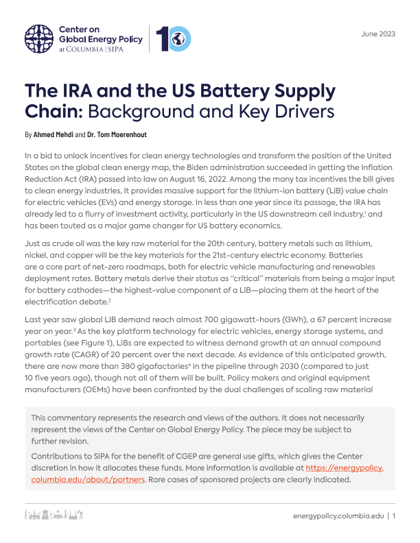 【Ahmed Mehdi 和 Dr. Tom Moerenhout】【202306】美国通胀削减法案及美国电池产业供应链-18页
