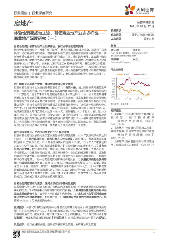 【天风证券】【20210927】房地产行业商业地产深度研究(一):体验性消费或为主流,引领商业地产业态多样性-25页