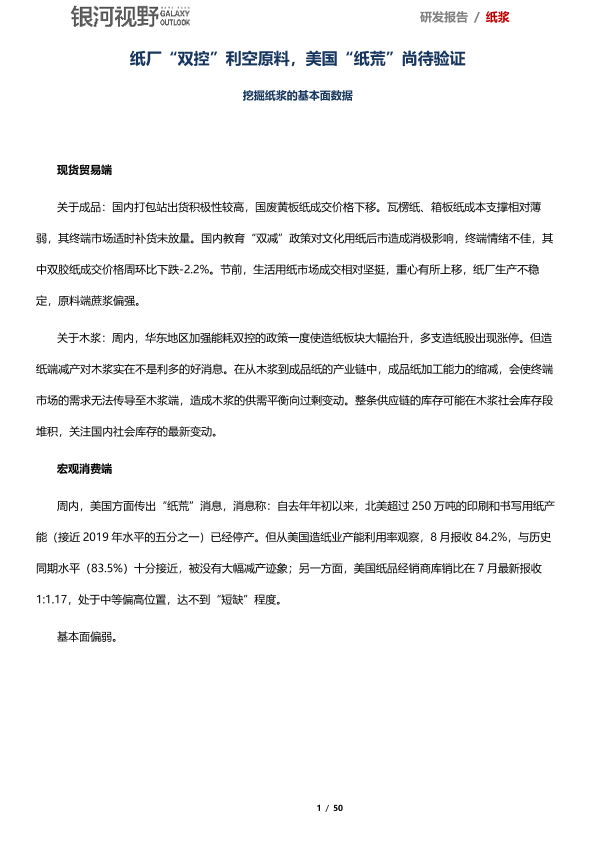 【银河期货】【20210924】挖掘纸浆的基本面数据:纸厂“双控”利空原料,美国“纸荒”尚待验证-50页