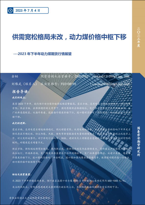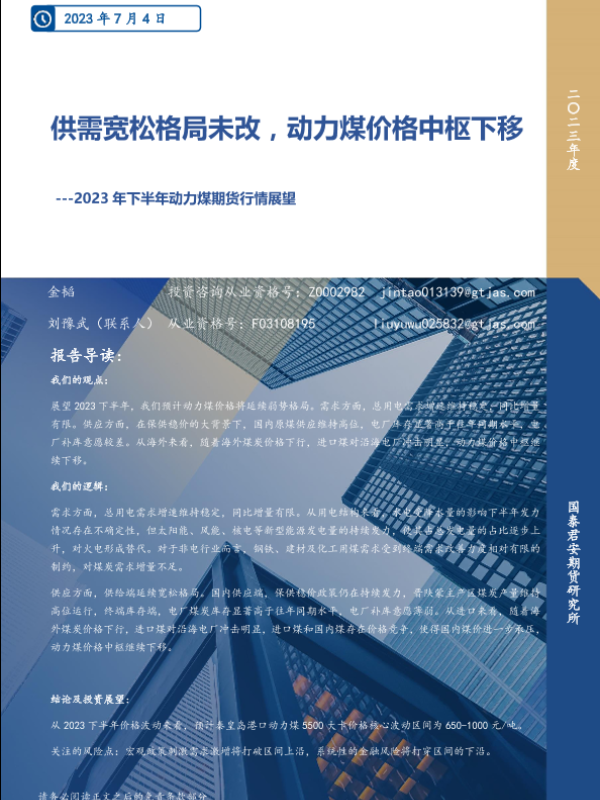 【国泰君安期货】【20230704】2023年下半年动力煤期货行情展望:供需宽松格局未改,动力煤价格中枢下移-19页