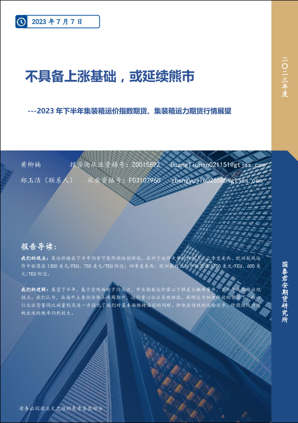 【国泰君安期货】【20230707】2023年下半年集装箱运价指数期货、集装箱运力期货行情展望:不具备上涨基础,或延续熊市-18页
