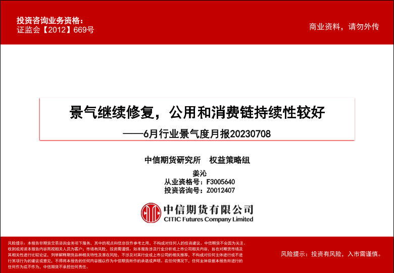 【中信期货】【20230708】6月行业景气度月报:景气继续修复,公用和消费链持续性较好-64页