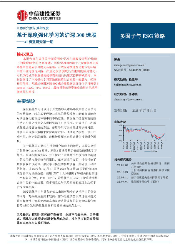 【中信建投证券】【20230711】AI模型研究第一期:基于深度强化学习的沪深300选股-19页