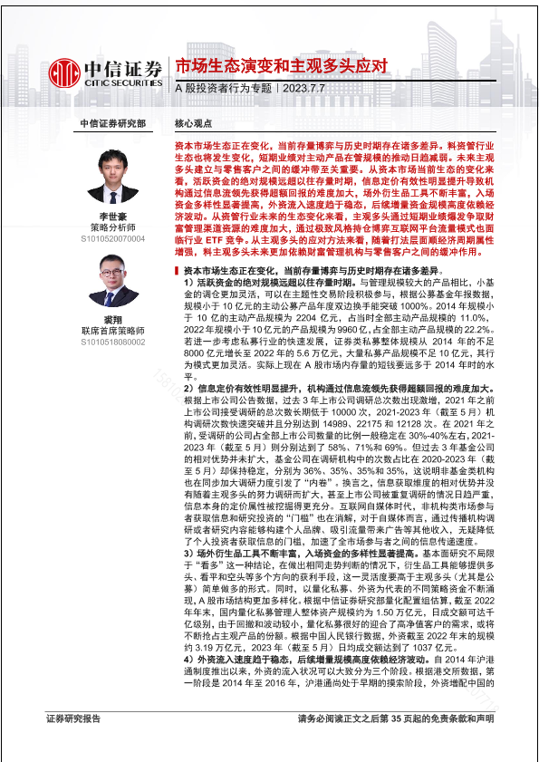 【中信证券】【20230707】A股投资者行为专题:市场生态演变和主观多头应对-36页