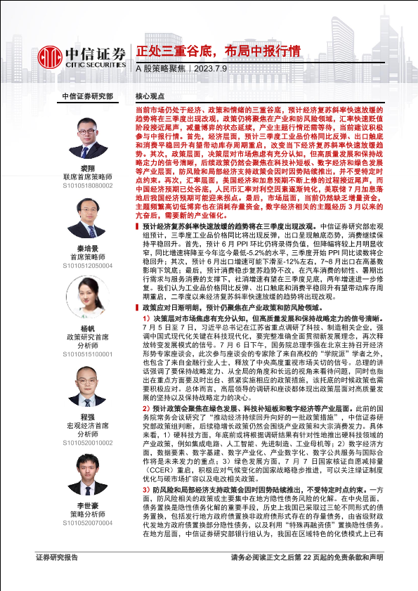 【中信证券】【20230709】A股策略聚焦:正处三重谷底,布局中报行情-23页
