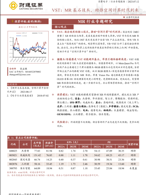 【财通证券】【20230712】MR行业专题研究:VST,MR基石技术,助推空间计算时代到来-19页