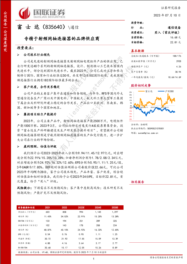 【国联证券】【20230710】专精于射频同轴连接器的品牌供应商-25页