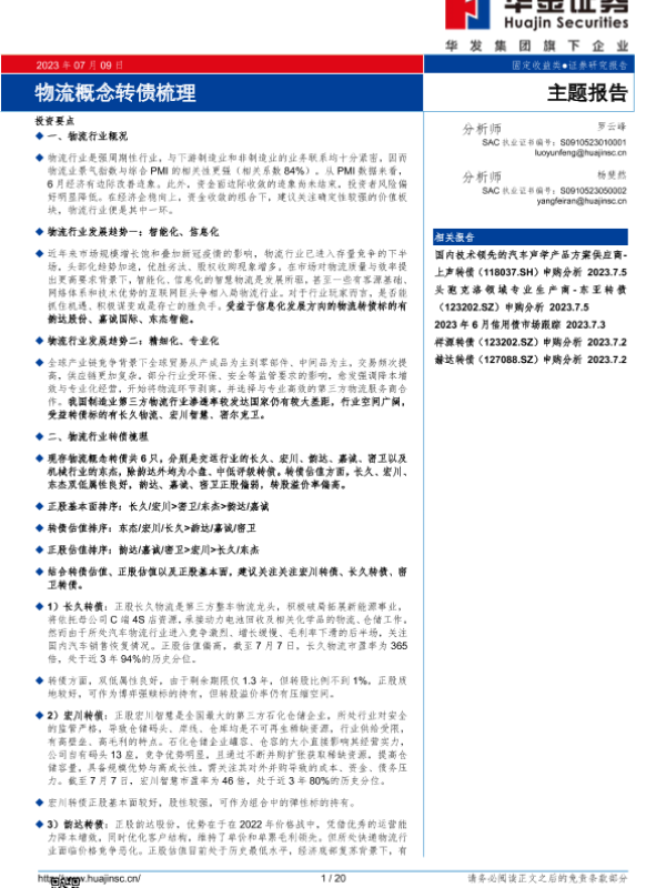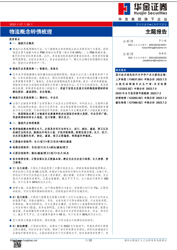 【华金证券】【20230709】主题报告:物流概念转债梳理-20页