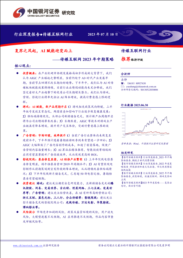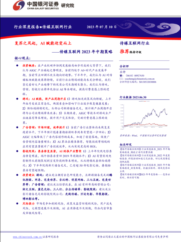 【银河证券】【20230710】传媒互联网2023年中期策略:复苏之风起,AI赋能迎变而上-33页