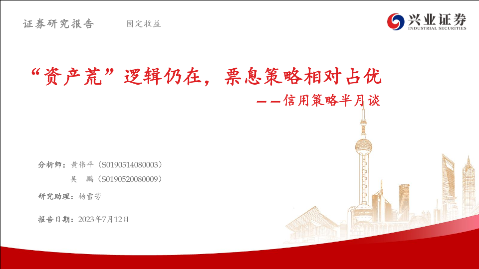【兴业证券】【20230712】信用策略半月谈:“资产荒”逻辑仍在,票息策略相对占优-58页