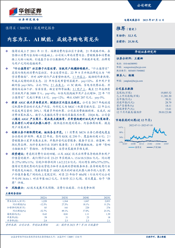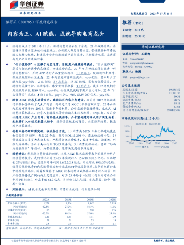 【华创证券】【20230711】值得买(300785)深度研究报告:内容为王、AI赋能,成就导购电商龙头-30页