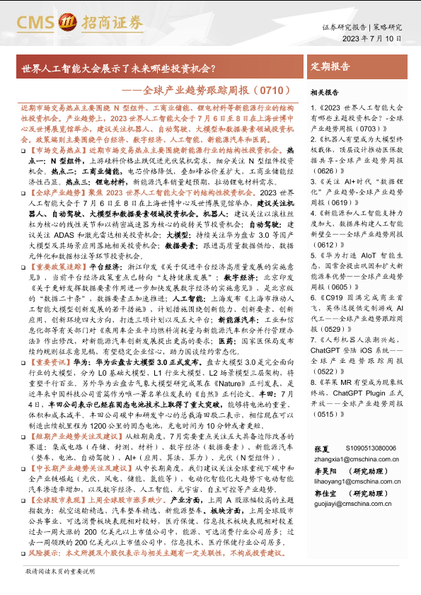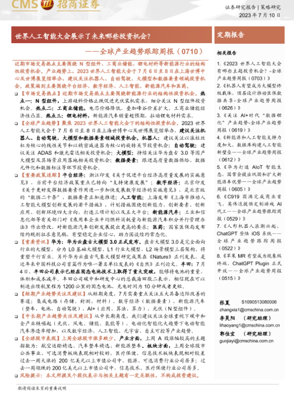 【海通证券】【20230710】全球产业趋势跟踪周报(0710):世界人工智能大会展示了未来哪些投资机会?-28页