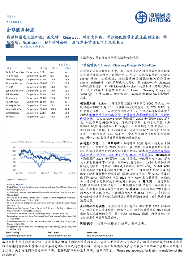 【海通国际】【20230710】y、所乐太阳能、普拉格能源带来最佳盈利惊喜;维斯塔斯、Nextracker、MP材料公司、恩飞斯和雷诺瓦下行风险提示-44页