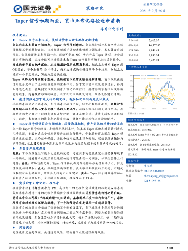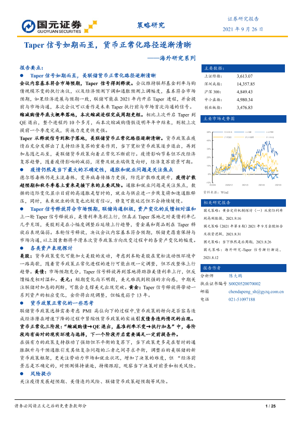 【国元证券】【20210926】Taper信号如期而至,货币正常化路径逐渐清晰-25页
