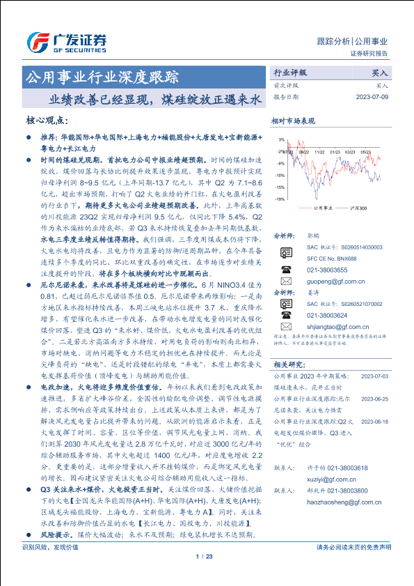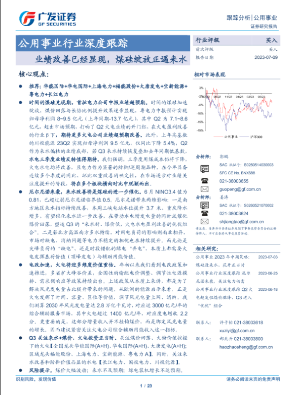 【广发证券】【20230709】公用事业行业深度跟踪:业绩改善已经显现,煤硅绽放正遇来水-23页