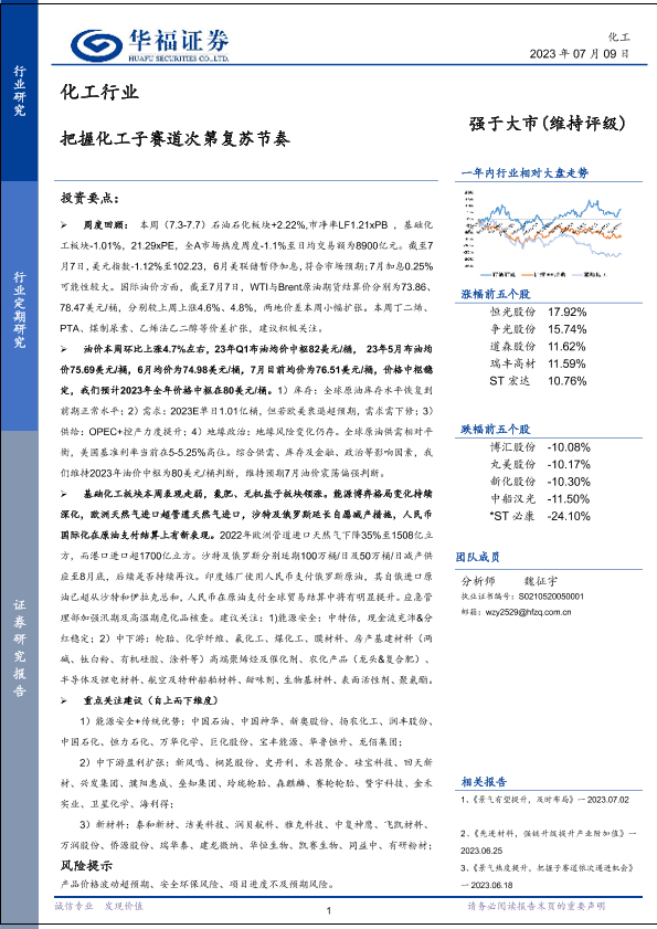 【华福证券】【20230709】化工行业:把握化工子赛道次第复苏节奏-32页