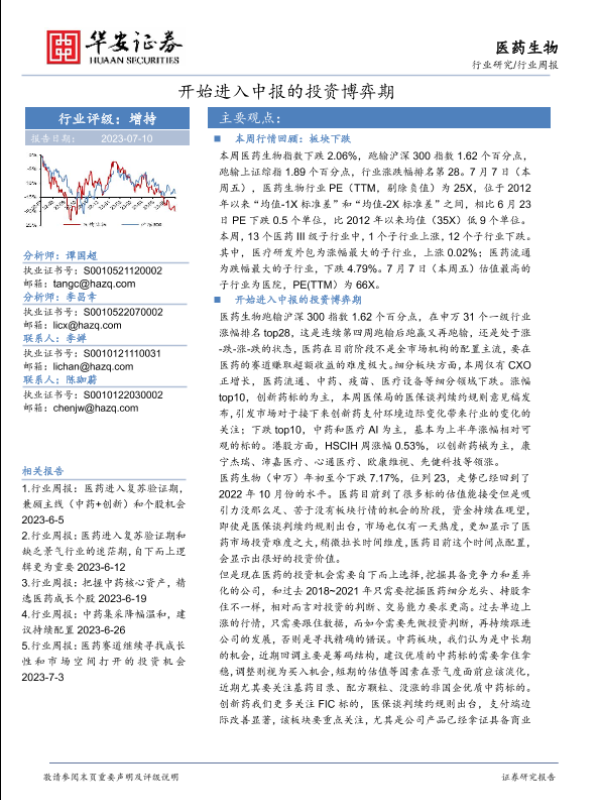 【华安证券】【20230710】医药生物行业周报:开始进入中报的投资博弈期-22页