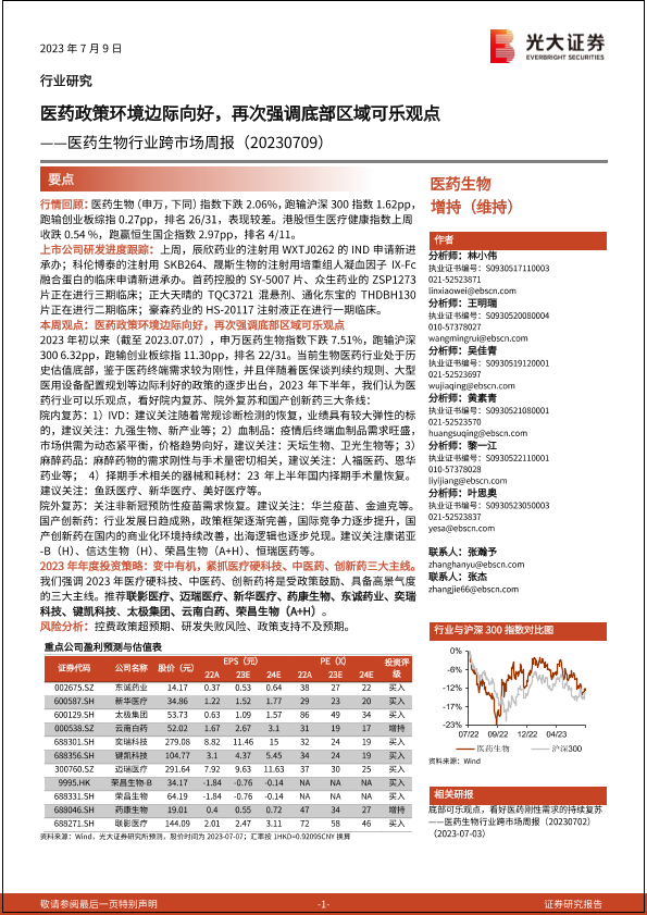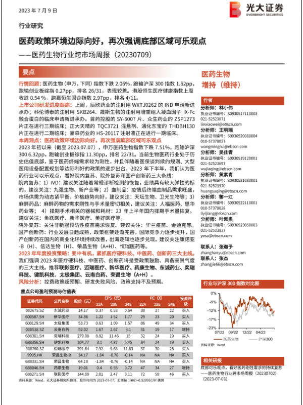 【光大证券】【20230709】医药生物行业跨市场周报:医药政策环境边际向好,再次强调底部区域可乐观点-26页