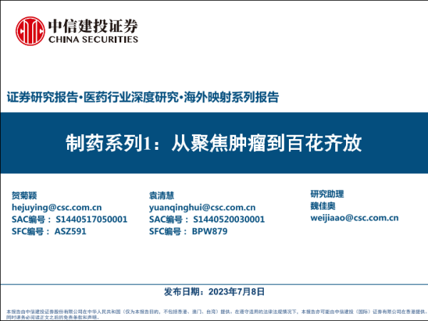 【中信建投证券】【20230708】医药行业深度研究·海外映射系列报告:制药系列1,从聚焦肿瘤到百花齐放-139页