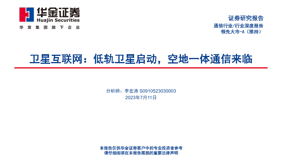 【华金证券】【20230711】卫星互联网-低轨卫星启动-空地一体通信来临-64页