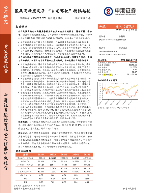 【申港证券】【20230722】华测导航首次覆盖报告(300627):聚集高精度定位 “自动驾驶”扬帆起航-26页
