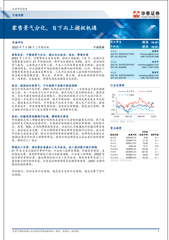 【华泰证券】【20230708】可选消费行业中期策略:零售景气分化,自下而上捕捉机遇-33页