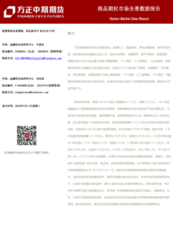 【方正中期期货】【20230711】商品期权市场全景数据报告-95页