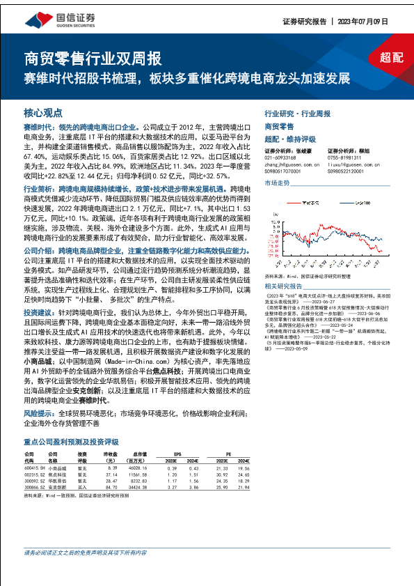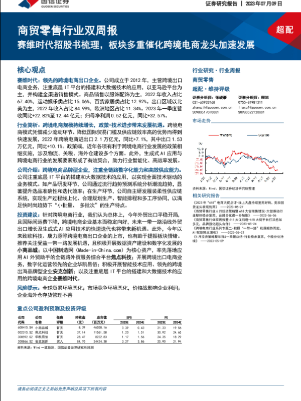 【国信证券】【20230709】商贸零售行业双周报:赛维时代招股书梳理,板块多重催化跨境电商龙头加速发展-20页