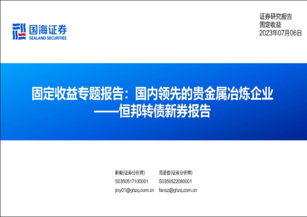 【国海证券】【20230706】固定收益专题报告:恒邦转债新券报告,国内领先的贵金属治炼企业-17页