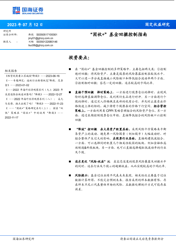 【国海证券】【20230712】固定收益研究:“固收+”基金回撤控制指南-18页