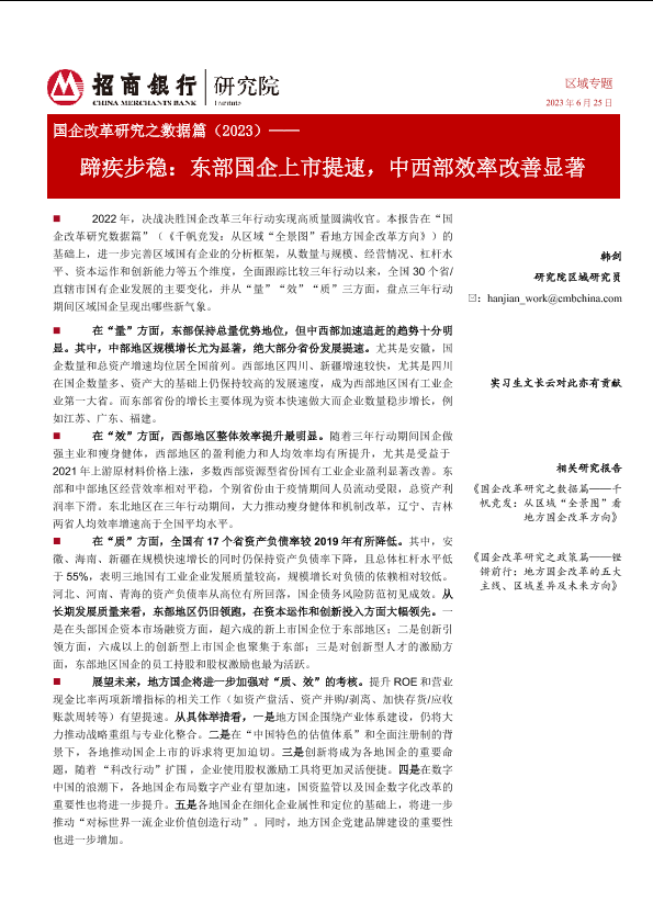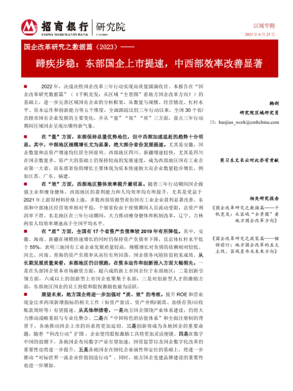 【招商银行】【20230625】国企改革研究之数据篇(2023)——蹄疾步稳:东部国企上市提速,中西部效率改善显著-23页