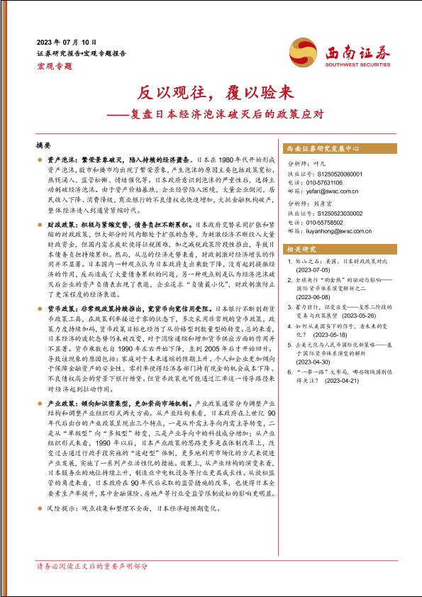 【西南证券】【20230710】复盘日本经济泡沫破灭后的政策应对:反以观往,覆以验来-19页