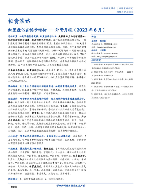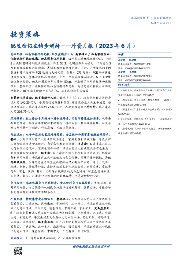 【国盛证券】【20230704】外资月报(2023年6月):配置盘仍在稳步增持-17页