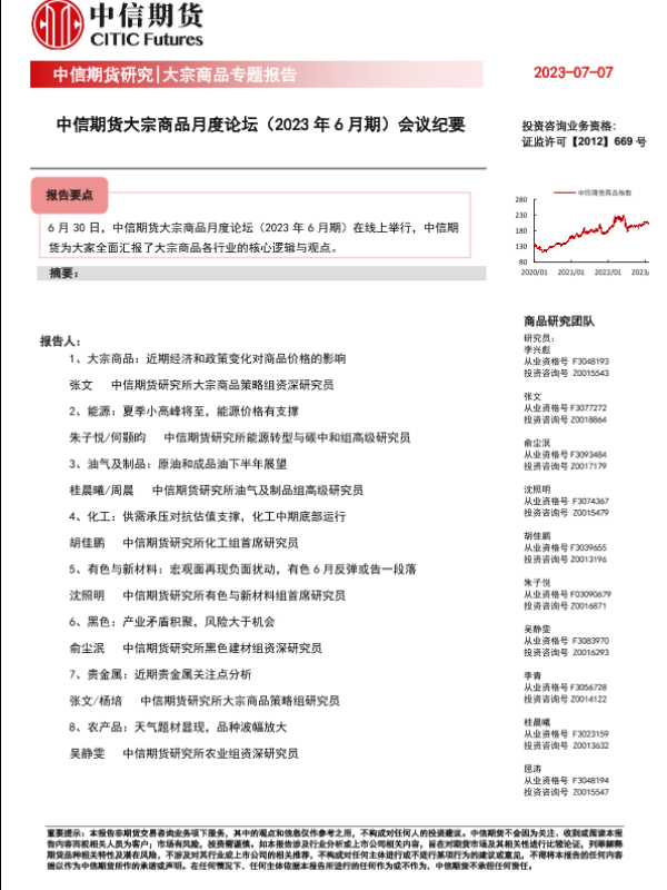 【中信期货】【20230707】大宗商品月度论坛(2023年6月期)会议纪要-23页