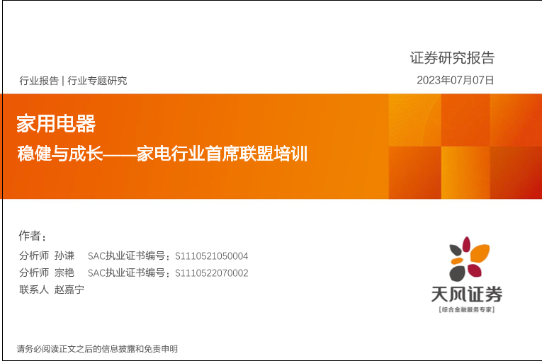 【天风证券】【20230707】稳健与成长——家电行业首席联盟培训-36页