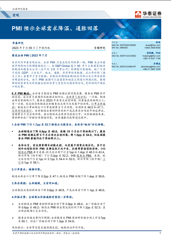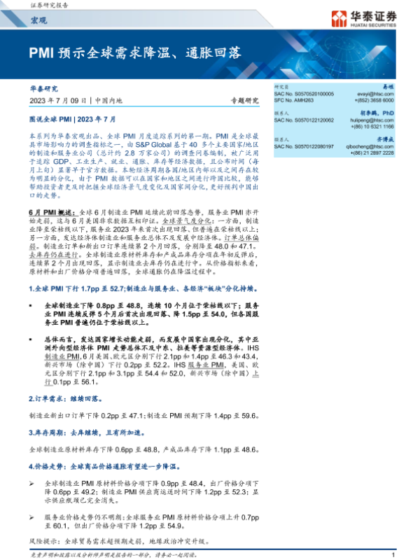 【华泰证券】【20230709】宏观专题研究:PMI预示全球需求降温、通胀回落-17页