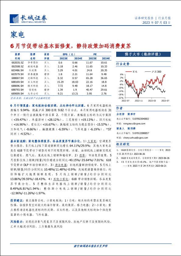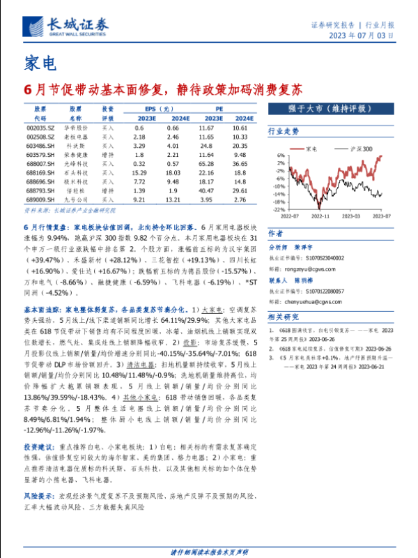 【长城证券】【20230703】家电行业月报:6月节促带动基本面修复,静待政策加码消费复苏-16页