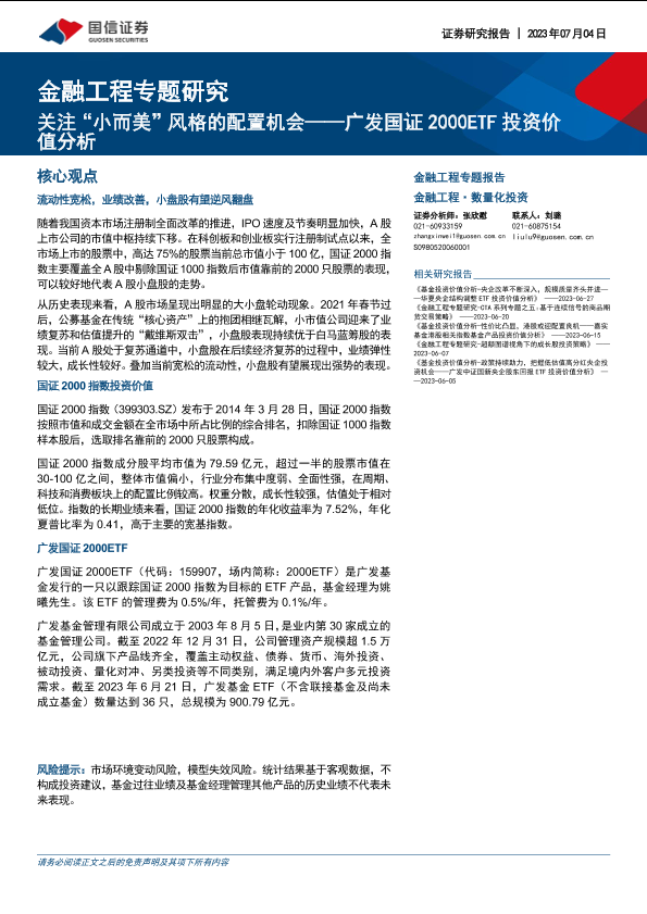 【国信证券】【20230704】广发国证2000ETF投资价值分析:关注“小而美”风格的配置机会-18页