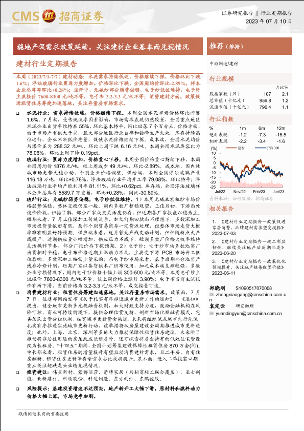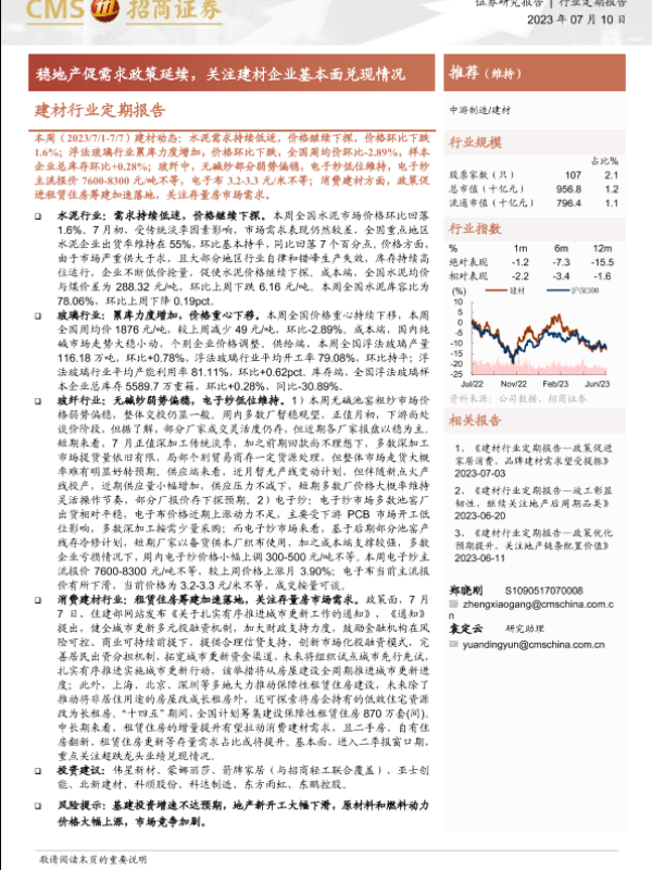 【海通证券】【20230710】建材行业定期报告:稳地产促需求政策延续,关注建材企业基本面兑现情况-24页