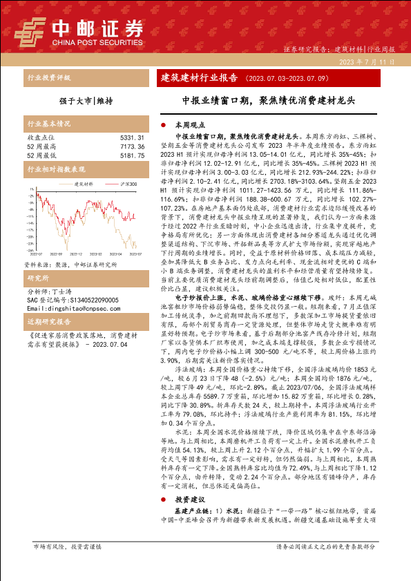 【中邮证券】【20230711】建筑建材行业报告:中报业绩窗口期,聚焦绩优消费建材龙头-25页