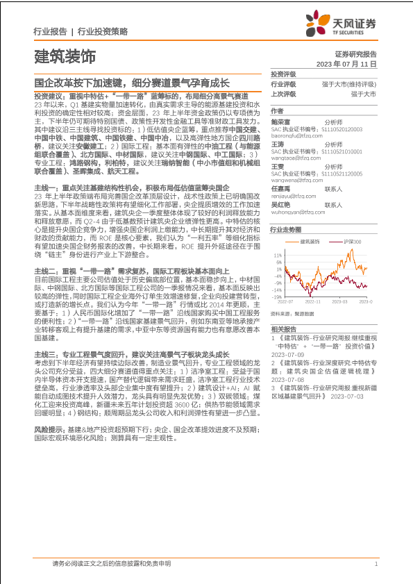 【天风证券】【20230711】建筑装饰行业投资策略:国企改革按下加速键,细分赛道景气孕育成长-54页