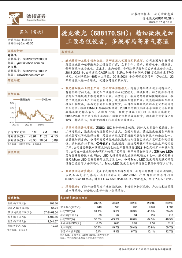 【德邦证券】【20230710】德龙激光(688170)精细微激光加工设备佼佼者,多线布局高景气赛道-28页