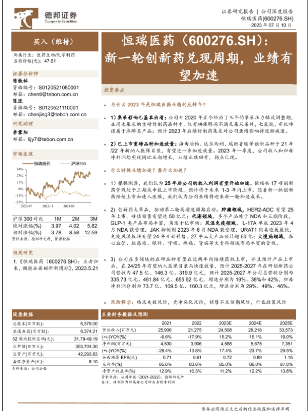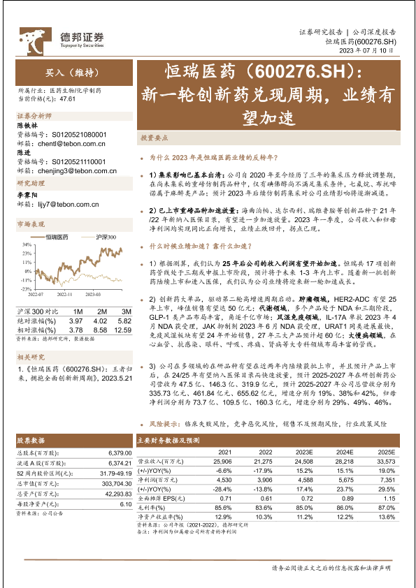 【德邦证券】【20230710】恒瑞医药-新一轮创新药兑现周期,业绩有望加速-16页