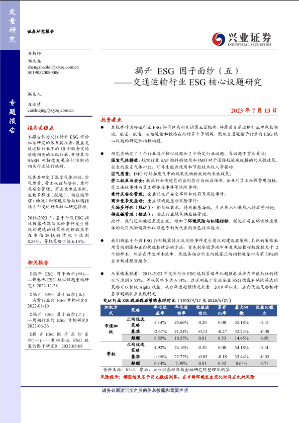 【兴业证券】【20230713】揭开ESG因子面纱(五):交通运输行业ESG核心议题研究-44页
