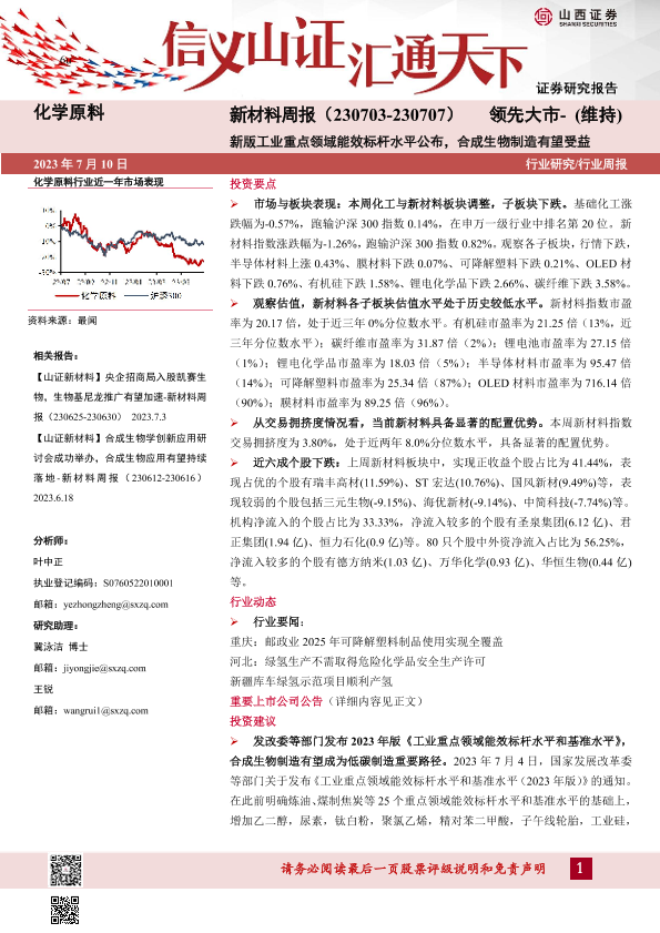 【山西证券】【20230710】新材料周报:新版工业重点领域能效标杆水平公布,合成生物制造有望受益-26页
