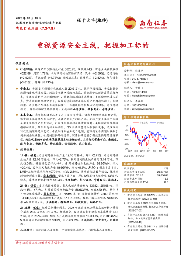 【西南证券】【20230709】有色行业周报:重视资源安全主线,把握加工标的-23页