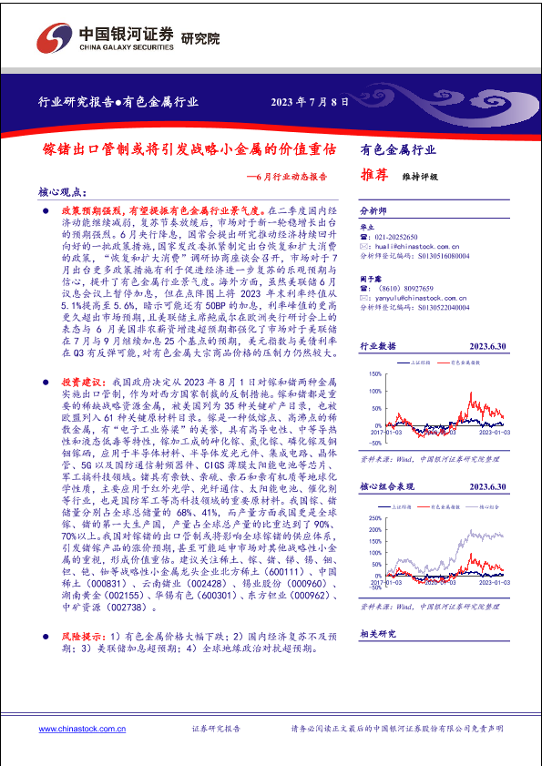 【银河证券】【20230708】有色金属6月行业动态报告:镓锗出口管制或将引发战略小金属的价值重估-24页